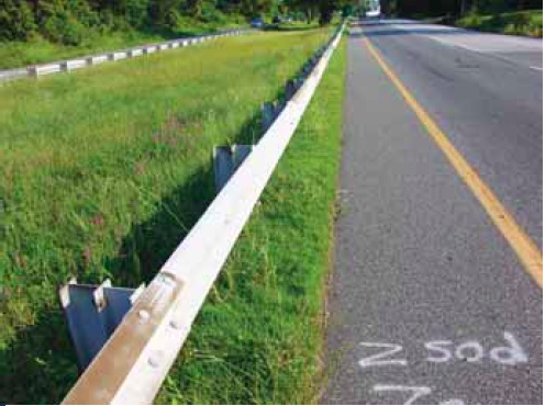 [Roads & Bridges April 2013] -- For the past 50 years or more, mowing and herbicides have been the predominant methods used to manage USA's nationwide roadside vegetation. New environmental laws, reduced budgets and increased public interests necessitate finding more environmentally sensitive methods, incorporating new technologies, incurring lower maintenance costs and finding cost-effective alternatives to today’s methods of management of roadside vegetation. The Delaware Department of Transportation (DelDOT) is committed to reducing pesticide use in their transportation rights-of-way and therefore funded a study to look at various options for controlling vegetation under guardrails while maintaining functionality. The area adjacent to the guardrail must be kept clear of vegetation to allow clear visibility of the barrier. Robert Moosmann of Maine DOT explained that control of vegetation under and behind guardrails would restrict the buildup of debris, which includes sand and sediment that prevent proper sheet flow of water off the road surface. With unmanaged vegetation, rills develop behind the guardrail as water channels to points of least resistance and results in erosion. But low-growing grasses planted under guardrails can increase biofiltration of storm-water runoff. Some states use mowing and hand trimming (mechanical control) as their primary management tool. Mowing, while evaluated as the most cost efficient currently available option in a California study, is often not feasible because of mower size and the inability to maneuver the mowing head around and under the guardrails. Hand trimming is time consuming and labor intensive as well as dangerous because of operator exposure working between traffic and the barriers. With cultural control, a plant species is established that will compete with and suppress growth of the unwanted brush. A dense stand of low-growing plants is referred to as living mulch. White clover was tested as living mulch but did not establish successfully enough to compete with weeds. Where maintenance with residual herbicides has been practiced over a number of years, the lingering presence of residual herbicides may limit desirable plant growth, favoring the most aggressive and often undesirable species. Creating and encouraging stable, low-maintenance vegetation is a more permanent vegetation-management strategy and should be the goal for all rights-of-way. [Photo: The study revealed that zoysiagrass sod provided a competitive, low maintenance vegetative cover under guardrail.] Comment